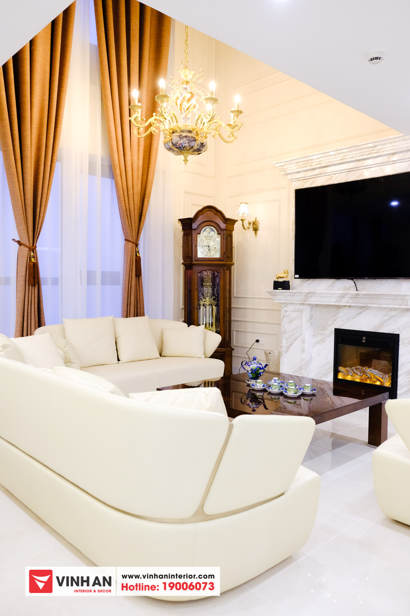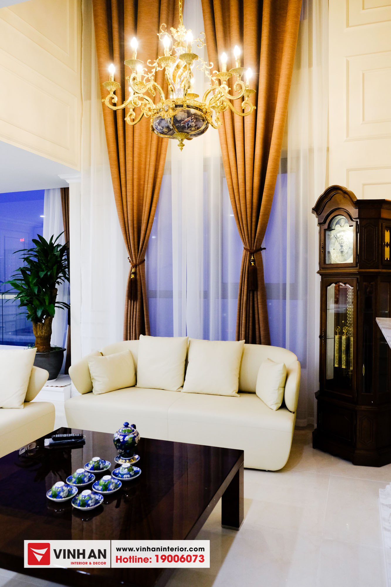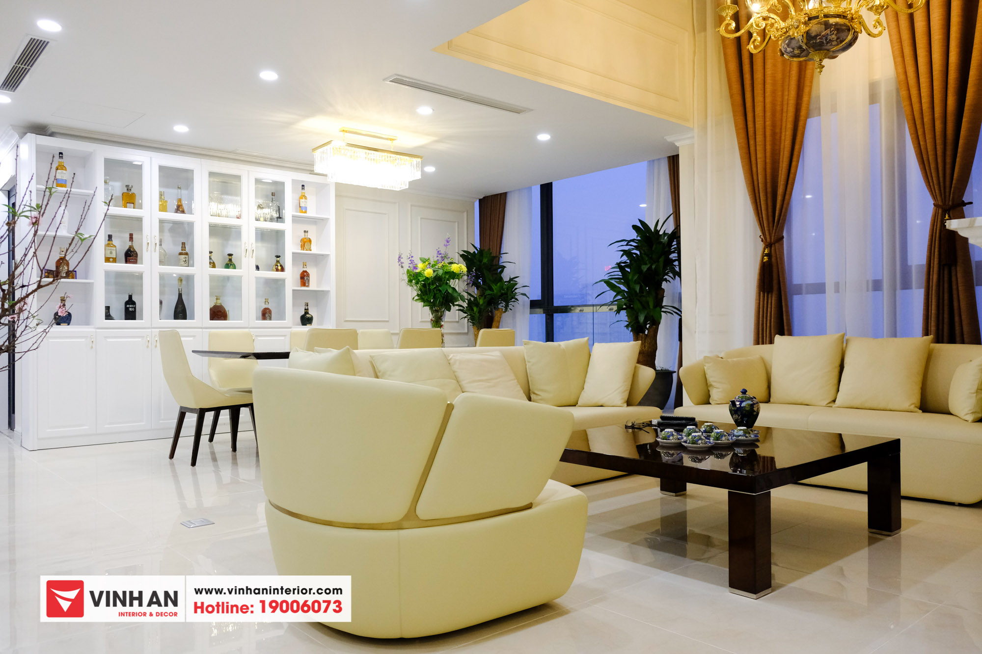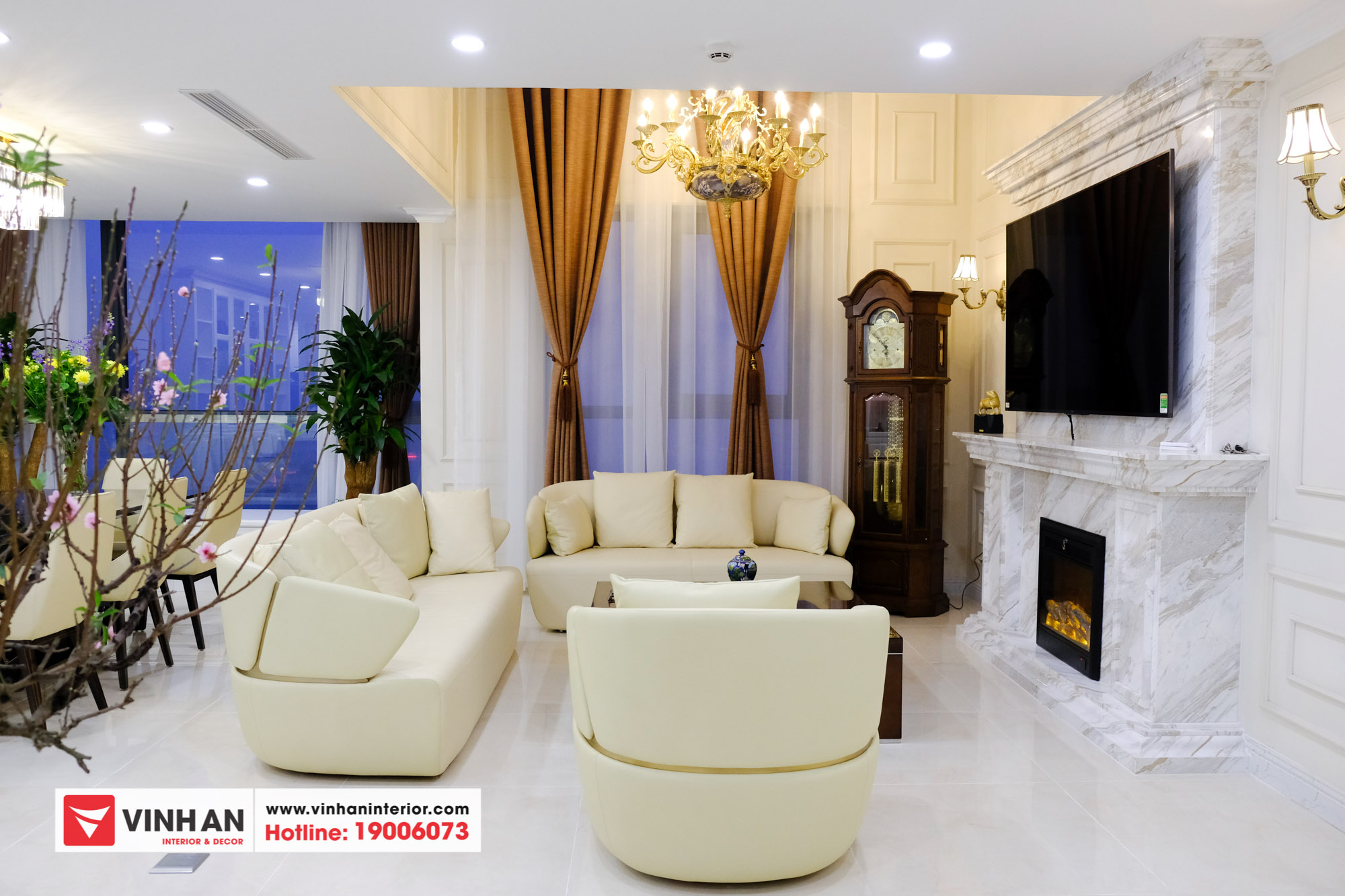 Ảnh chụp Căn hộ Penhouse thiết kế nội thất Tân cổ điển vừa được Nội thất Vĩnh An bàn giao cho khách hàng những ngày cận Tết Kỷ Hợi 2019.