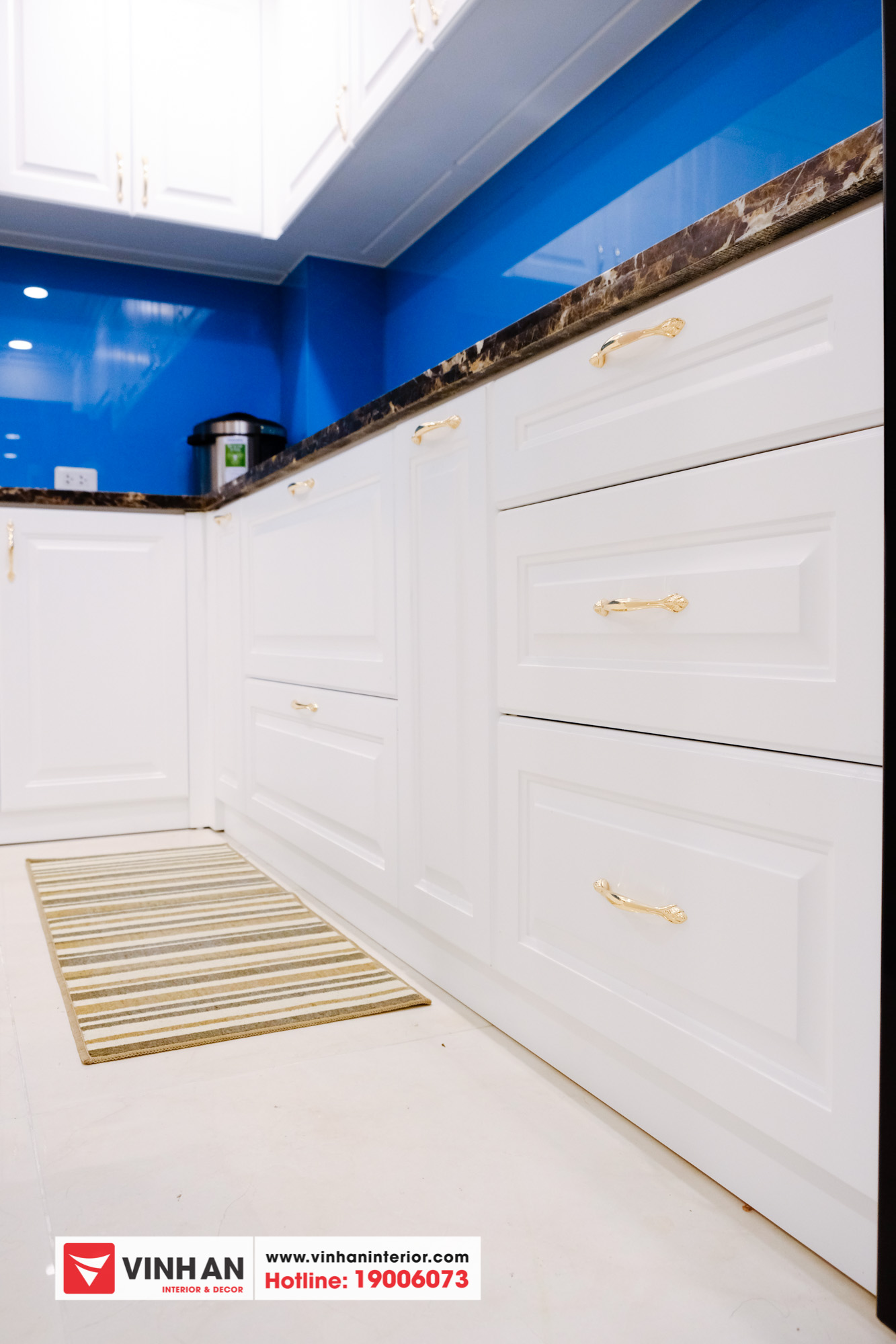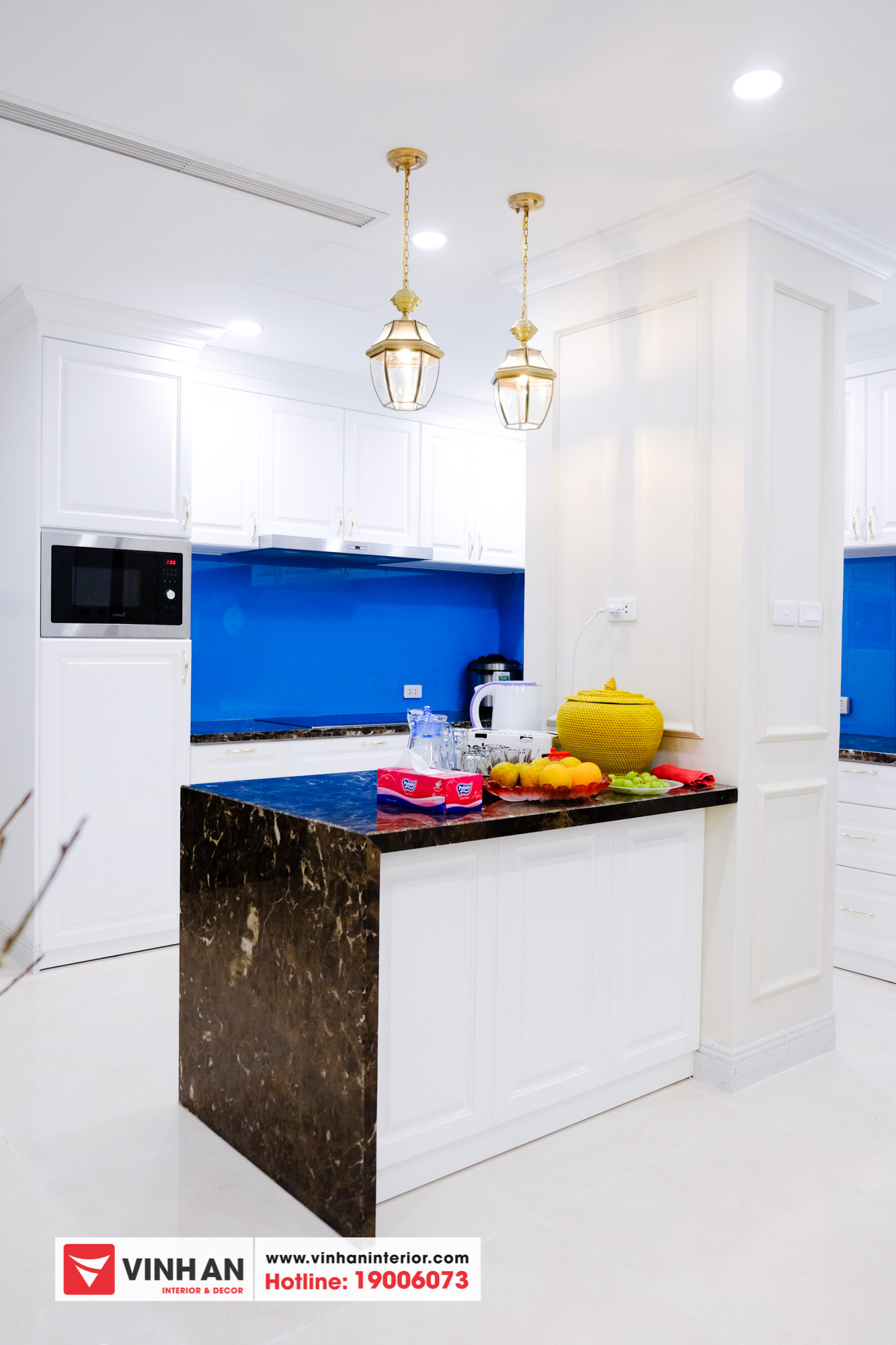 – Nội thất: gỗ MDF chống ẩm, đá Vicostone, phụ kiện Blum.
