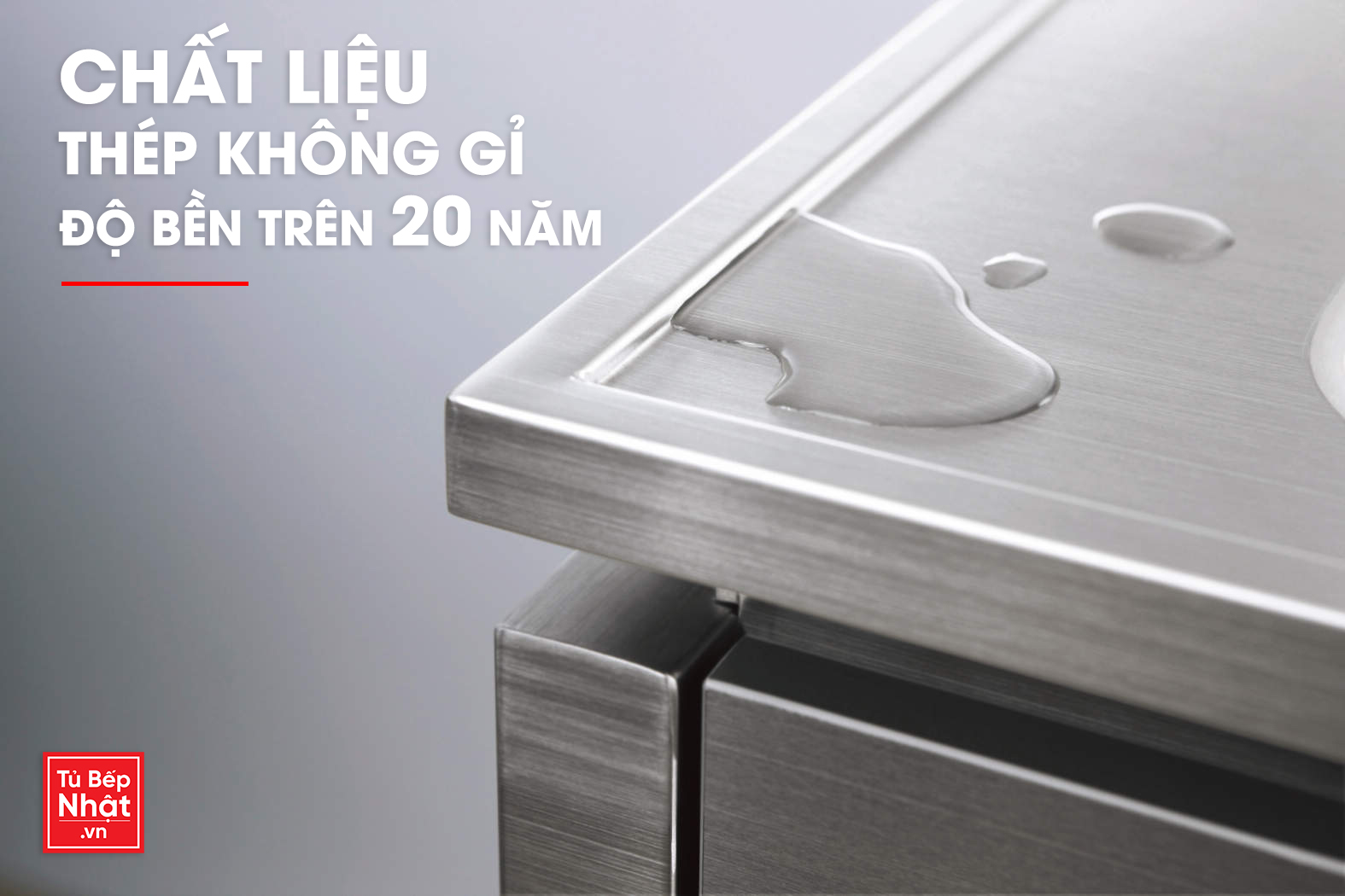 Các tủ bếp của EIDAI đều được sản xuất bằng vật liệu thép không gỉ có độ bền vĩnh cửu và thuận tiện cho việc lau chùi dọn dẹp.